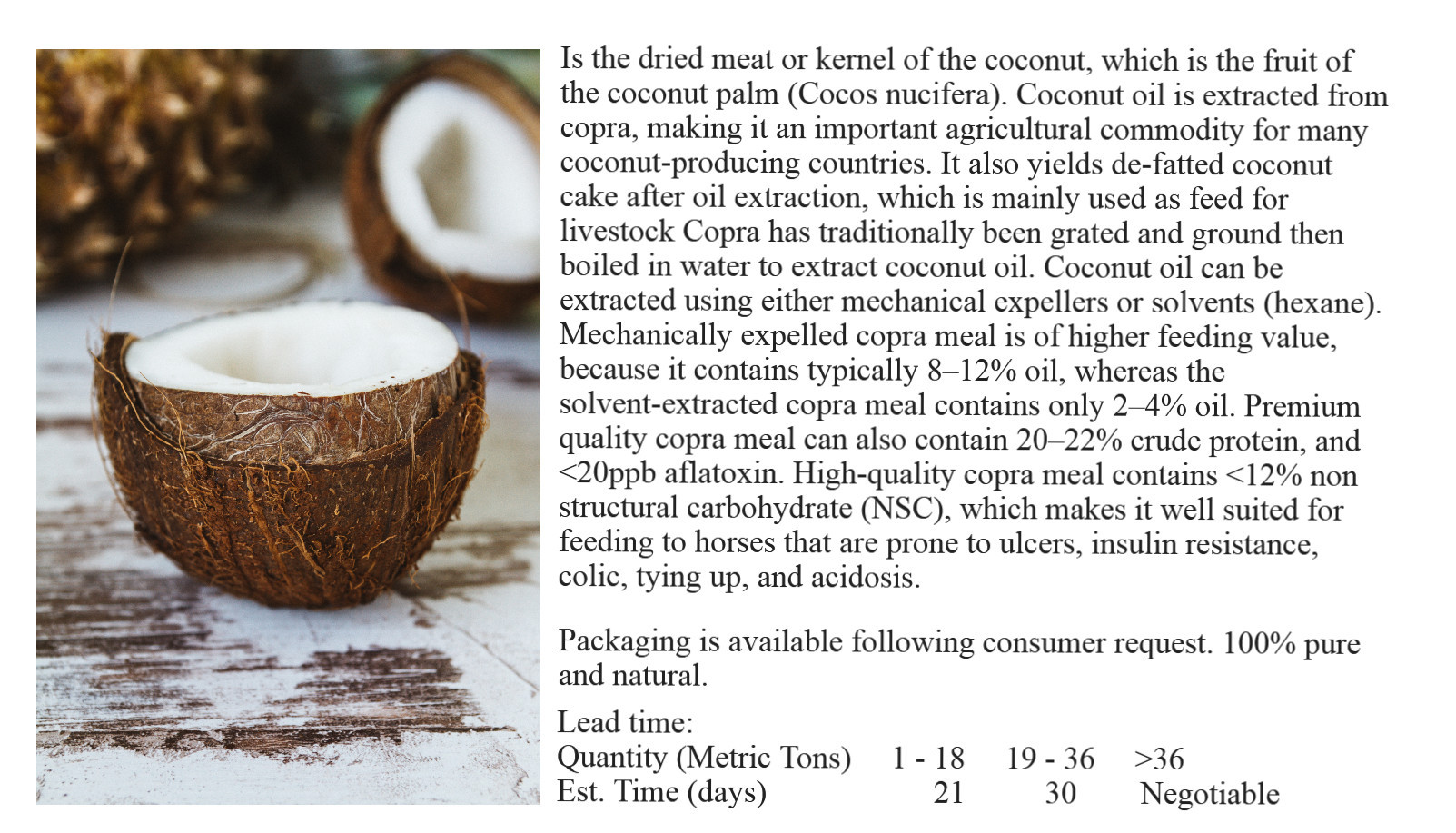 Is the dried meat or kernel of the coconut, which is the fruit of the coconut palm...