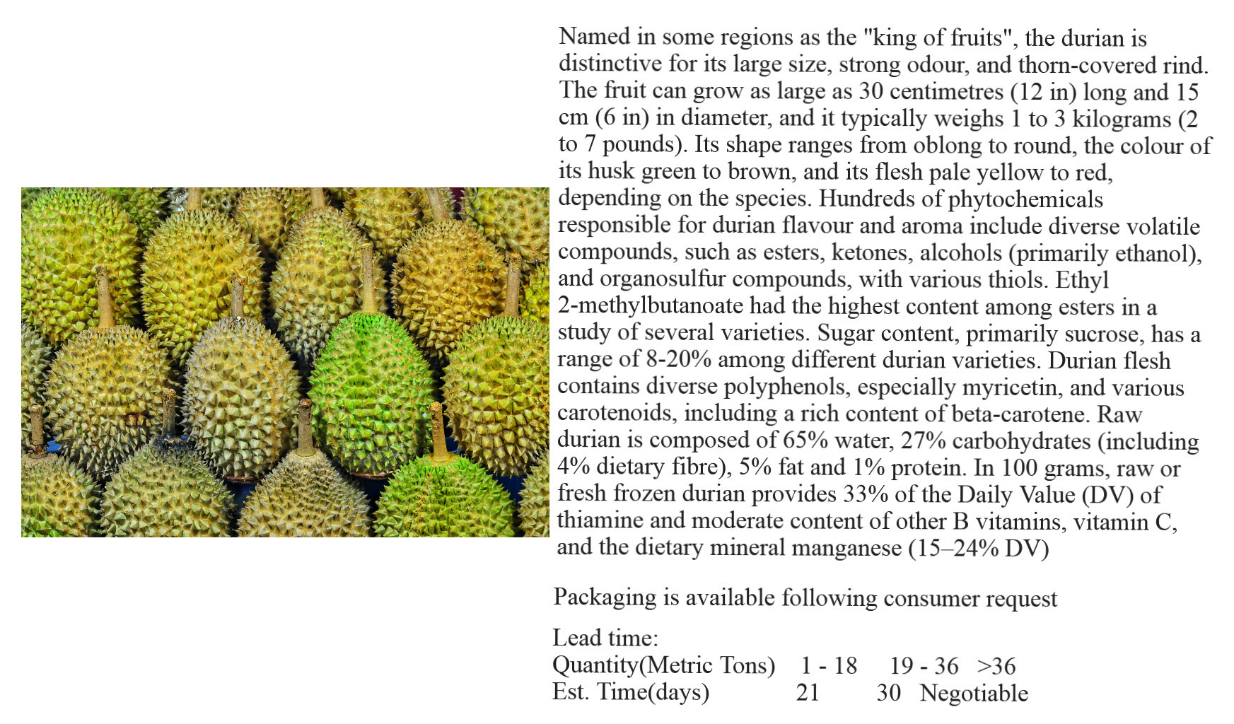 Named in some regions as the "king of fruits", the durian is distinctive for its large size...